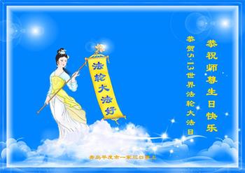 恭祝慈悲伟大的师父生日快乐!弟子感恩师父的慈悲苦度、弟子只有精進报师恩,做好师父交给的三件事,跟着师父圆满回家,谢谢师父,谢谢师父。 山东青岛市北区学法小组全体大法弟子叩拜 山东省青岛市平度市大法弟子一家三口恭祝师尊生日快乐!恭贺世界法轮大法日!