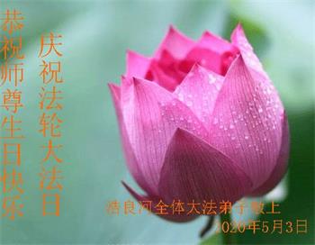 【明慧网二零二零年五月十二日】 黑龙江省伊春市浩良河全体大法弟子恭祝师尊生日快乐!庆祝法轮大法日!