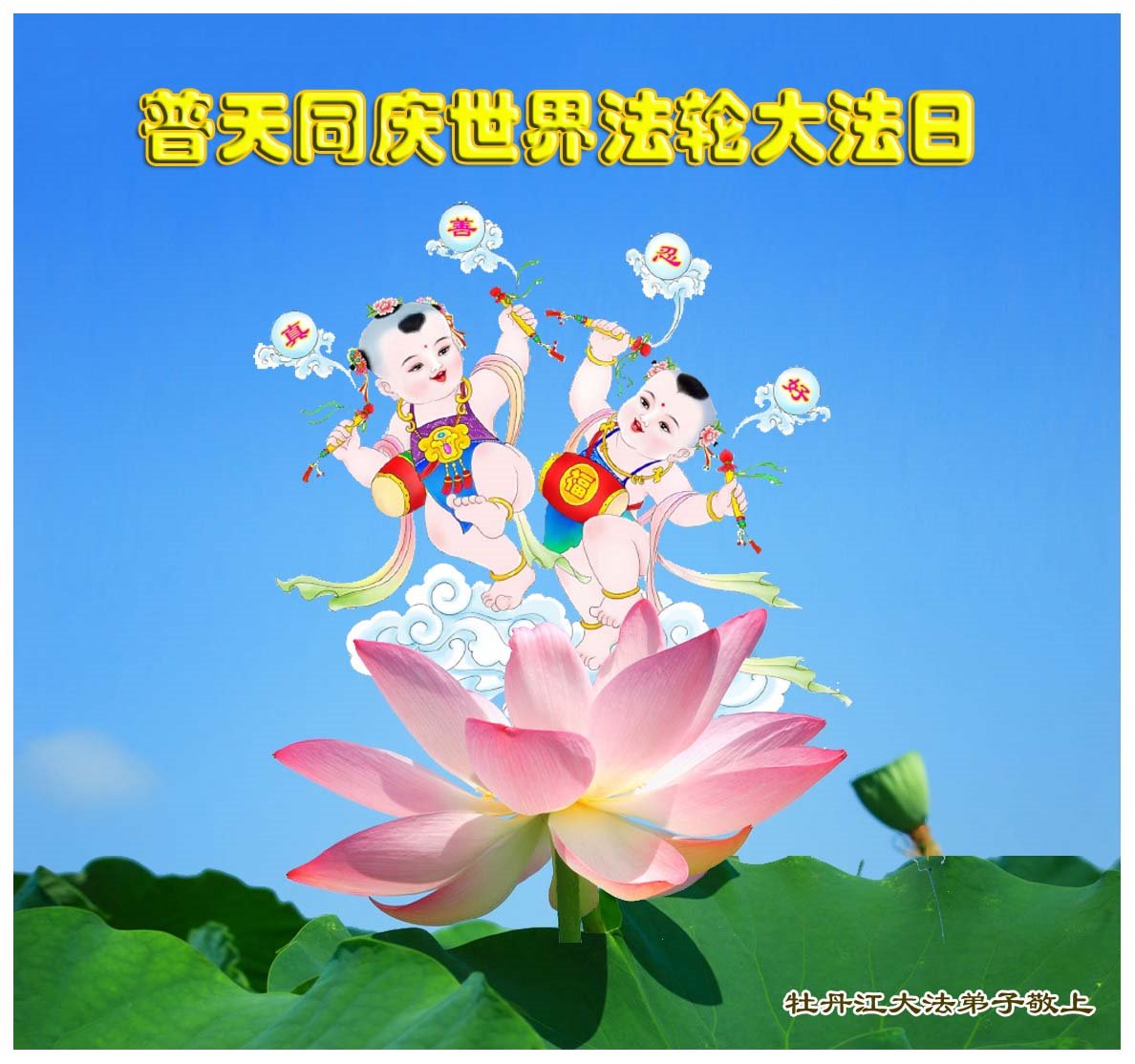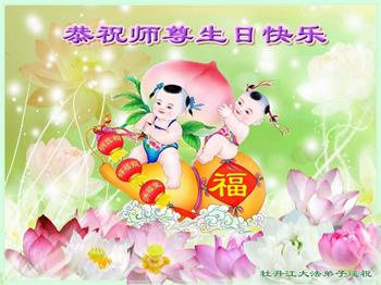 弟子们想念师父!弟子叩拜师尊! 黑龙江省牡丹江全体大法弟子恭祝师尊生日快乐!普天同庆世界法轮大法日!