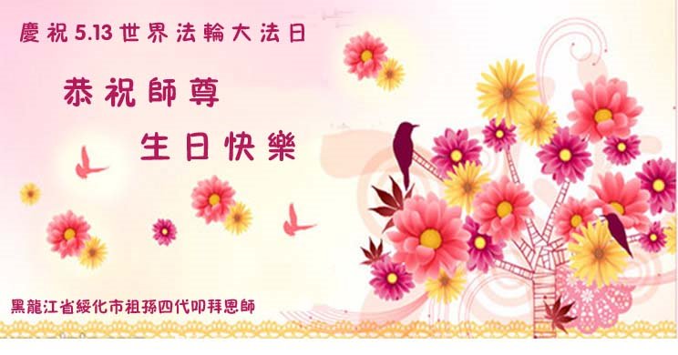 黑龙江三名大法弟子恭祝师父生日快乐!恭祝5·13世界法轮大法日!