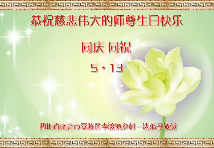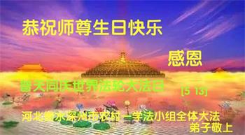 同庆同祝5·13世界法轮大法日! 四川省南充市嘉陵区李渡镇乡村一大法弟子敬贺 河北省衡水市深州市农村一学法小组大法弟子恭祝师尊生日快乐!