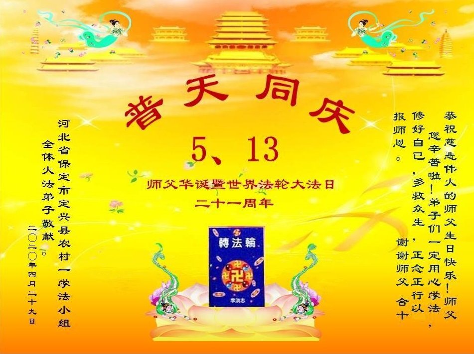 普天同庆大法洪传世界二十八周年! 同贺5.13世界法轮大法日! 四川遂宁市农村全体大法弟子跪拜 2020年5月6日 河北省保定市定州市全体农村大法弟子恭祝师尊生日快乐!