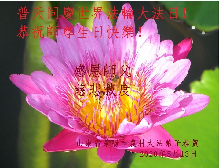 普天同庆世界法轮大法日! 山东省潍坊市寿光市农村全体大法弟子叩拜合十 2020年5月6日 河北省石家庄市一农村学法小组大法弟子恭祝师尊生日快乐!