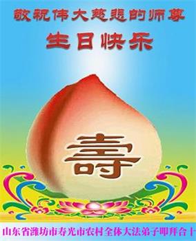 山东省潍坊市寿光市农村全体大法弟子恭祝慈悲伟大的师尊生日快乐!