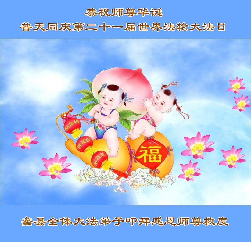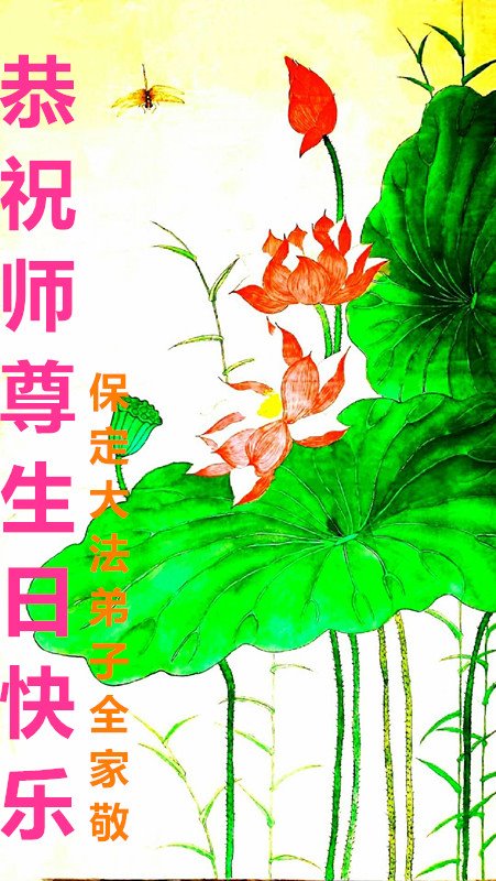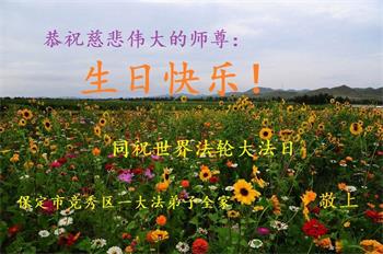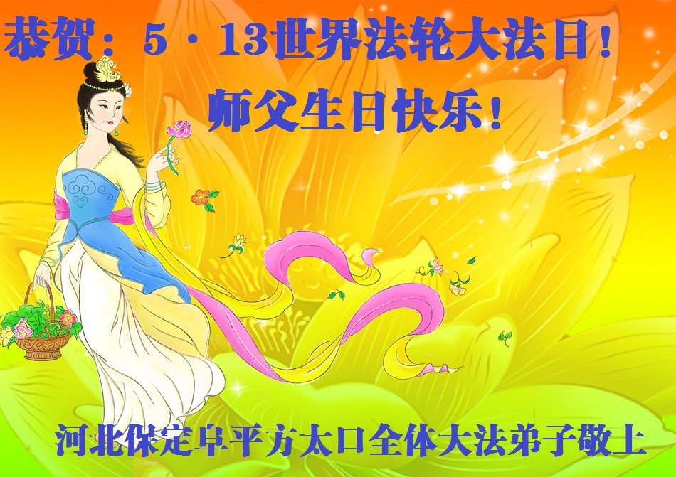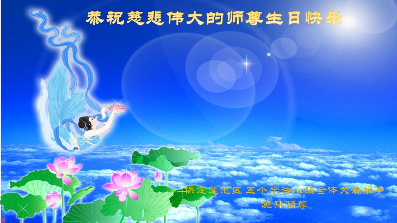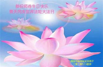 河北保定市一大法弟子恭贺世界法轮大法日!恭祝师父生日快乐!感谢恩师慈悲救度!