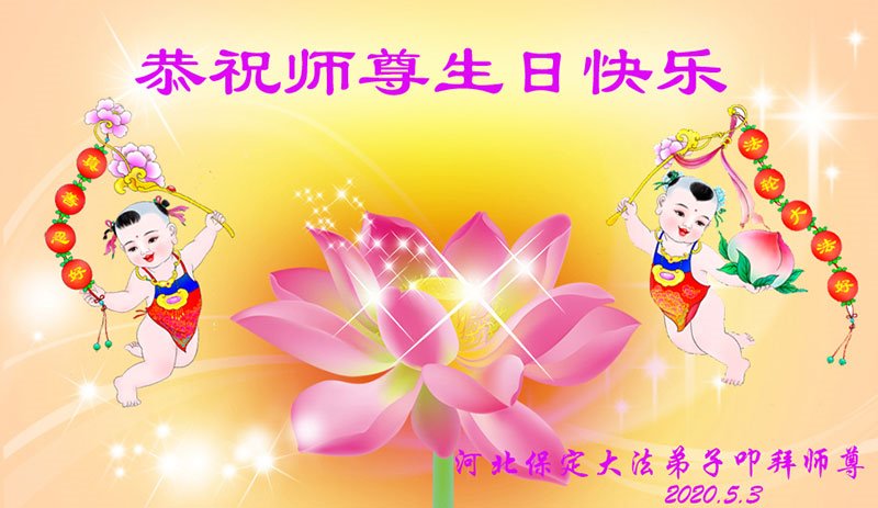 【明慧网二零二零年五月十二日】 河北省保定市大法弟子恭祝慈悲伟大的师尊生日快乐!
