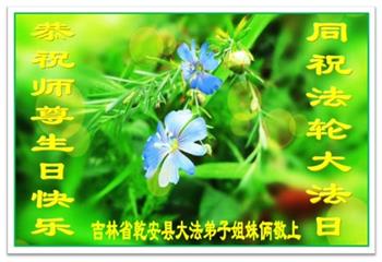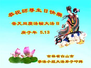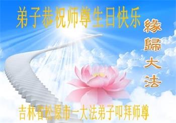 吉林省松原市一大法弟子恭祝师尊生日快乐!庆祝世界法轮大法日!