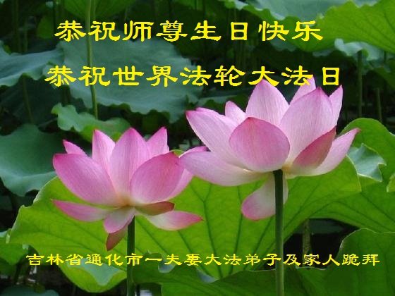 吉林省通化市一夫妻大法弟子及家人恭祝师尊生日快乐!恭祝世界法轮大法日!
