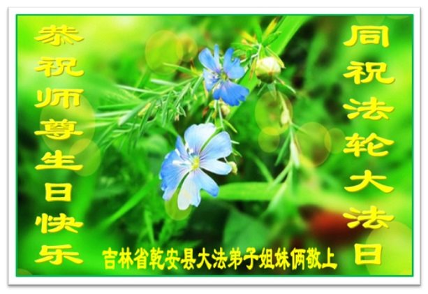 吉林省松原市乾安县大法弟子姐妹俩恭祝师尊生日快乐!