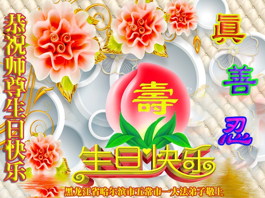【明慧网二零二零年五月十二日】 黑龙江省哈尔滨市宾县大法弟子恭祝师尊生日快乐!