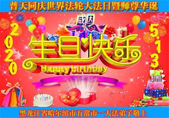 黑龙江哈尔滨全体大法弟子及家人恭祝慈悲伟大的师尊生日快乐!恭贺5·13世界法轮大法日!