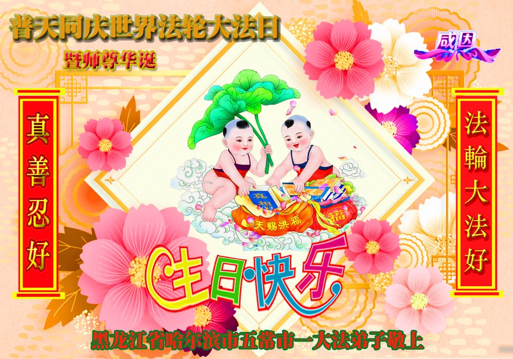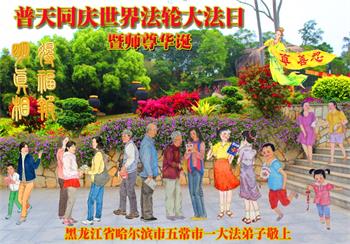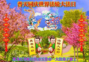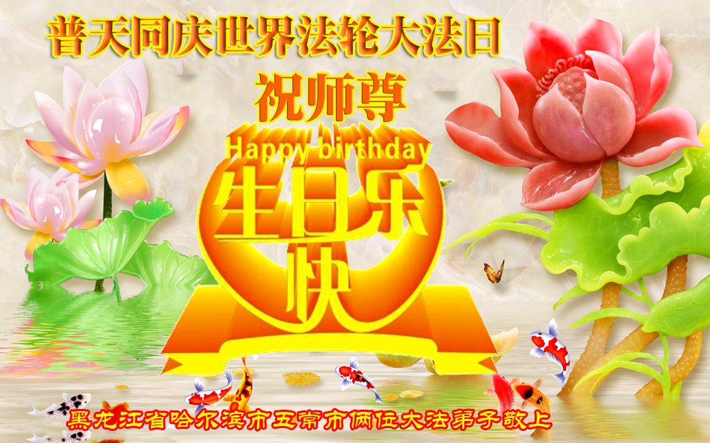 恭祝慈悲伟大的师父生日快乐! 黑龙江省哈尔滨市五常市俩大法弟子恭贺世界法轮大法日!