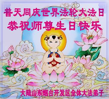 山东烟台开发区一家大法弟子恭贺世界法轮大法日!恭祝师尊生日快乐!