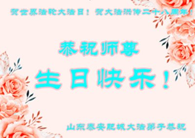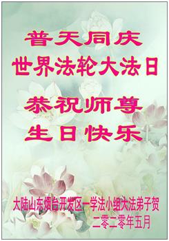 山东聊城大法弟子恭贺法轮大法日,恭祝师尊生日快乐!