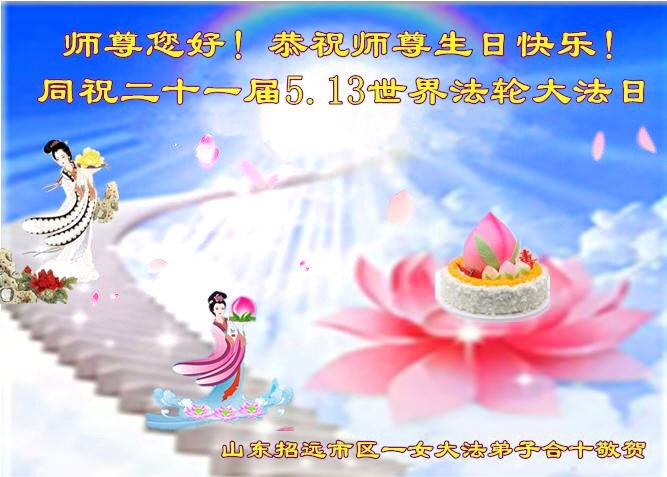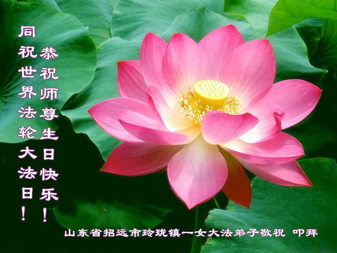 山东招远张星一学法小组敬上 山东烟台开发区全体大法弟子恭贺世界法轮大法日!恭祝师尊生日快乐!