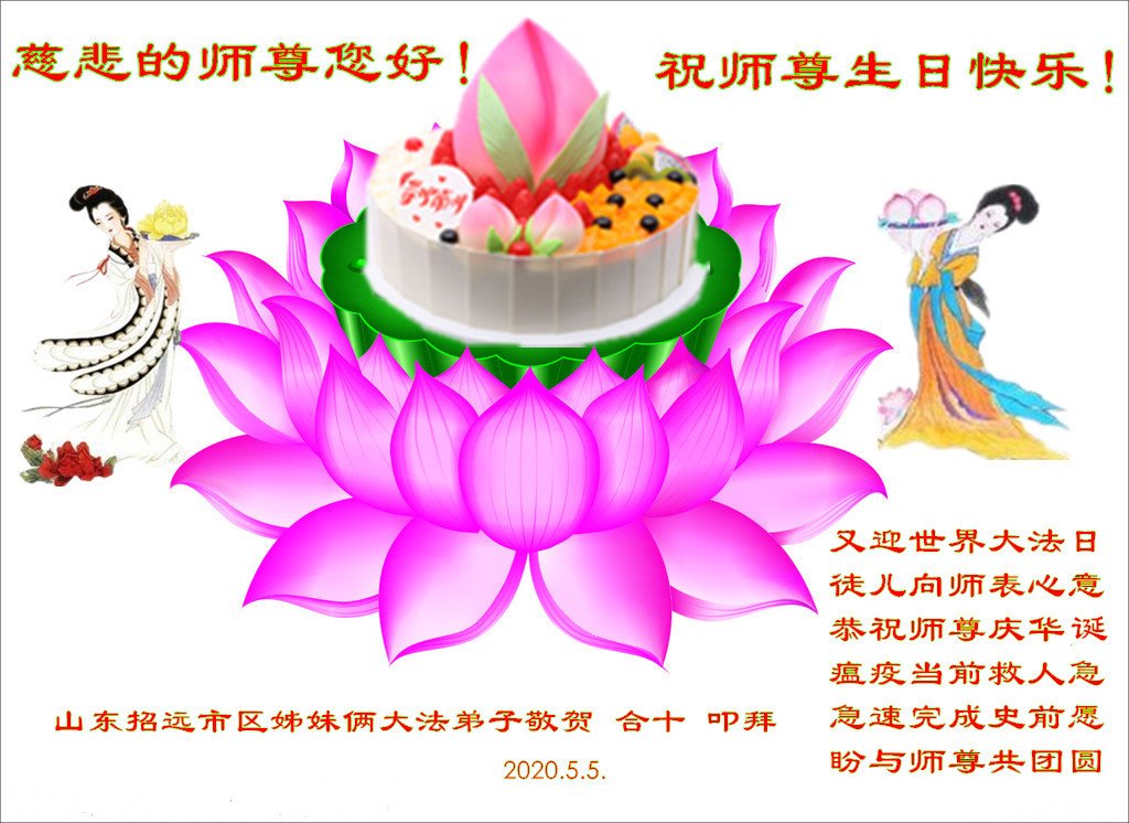 又迎世界大法日 徒儿向师表心意 恭祝师尊庆华诞 瘟疫当前救人急 快速完成史前愿 盼与师尊共团圆 山东省烟台市招远市大法弟子恭祝师尊生日快乐!