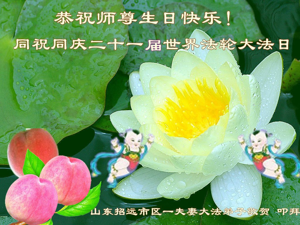 山东泰安一夫妻大法弟子恭祝师父生日快乐!感恩师父慈悲救度!