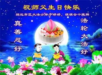 山东省烟台市招远市区三姐弟大法弟子恭祝师尊华诞!同祝同颂第二十一届世界法轮大法日!