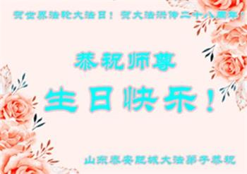 山东泰安大法弟子恭祝师尊生日快乐!