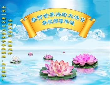 山东聊城一家三口大法弟子恭贺世界大法日暨师尊华诞!