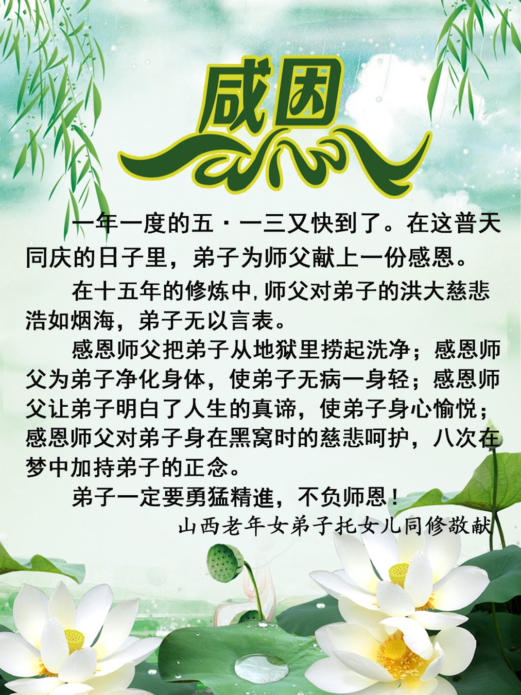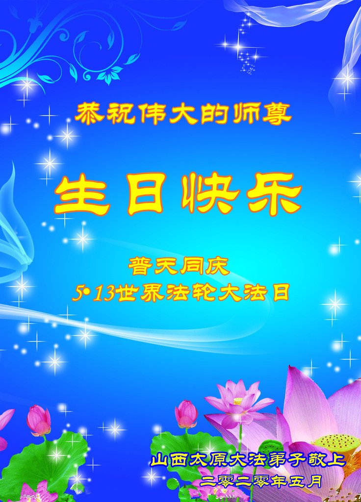 山西省太原市一大法弟子恭祝师尊生日快乐!