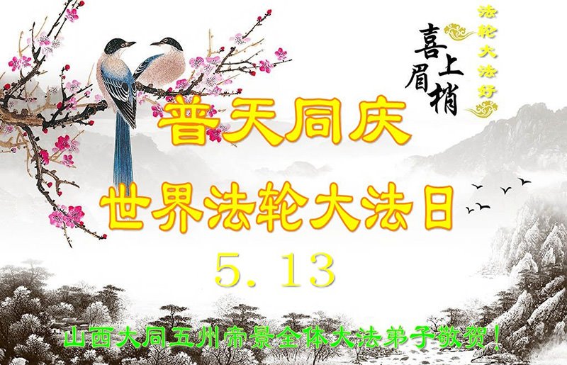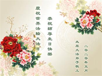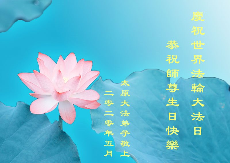 【明慧网二零二零年五月十二日】 山西省太原市大法弟子恭祝师尊生日快乐!庆祝世界法轮大法日!