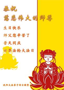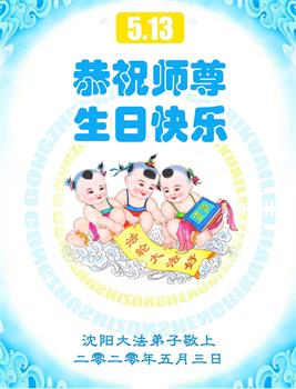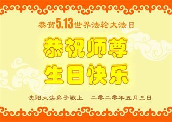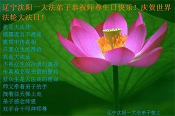 辽宁沈阳市一大法弟子恭祝慈悲伟大的师尊生日快乐!恭祝第二十一届世界法轮大法日!