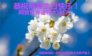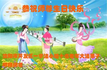 辽宁省沈阳一学法小组大法弟子恭贺师尊华诞暨世界法轮大法日!