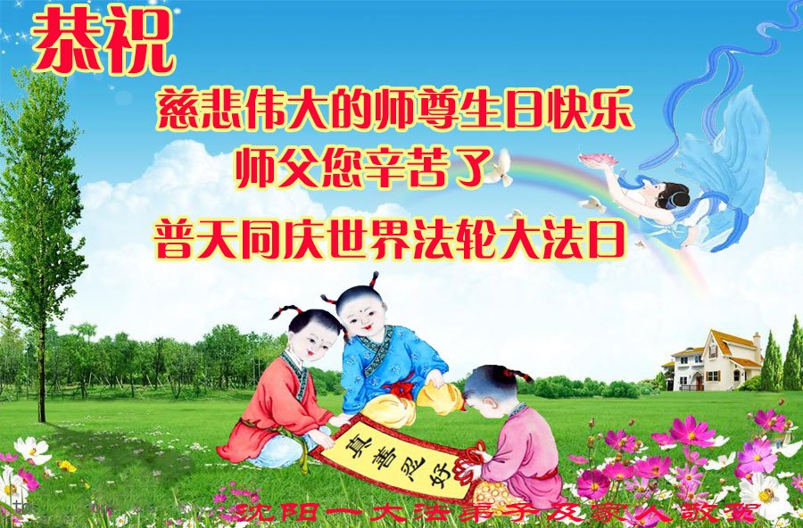恭贺世界法轮大法日! 师尊您辛苦了!弟子跪拜,万分感谢师尊救命苦度之恩! 辽宁省沈阳大法弟子恭祝师尊华诞!普天同庆世界法轮大法日!