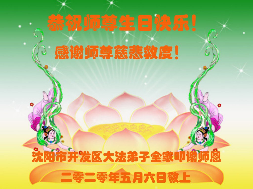 恭祝师尊生日快乐! 感恩师尊慈悲救度! 沈阳市开发区大法弟子全家叩拜师尊 二零二零年五月六日 辽宁省沈阳市开发区一学法小组大法弟子恭祝师尊生日快乐!