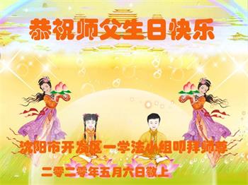 【明慧网二零二零年五月十二日】 辽宁省沈阳市开发区一学法小组十名大法弟子恭祝师尊生日快乐!