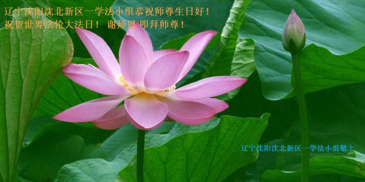 感恩师尊慈悲救度,唯有实修,精進不怠才能回报师恩,随师把家还! 合十 沈阳市皇姑区一学法小组全体大法弟子敬上 辽宁沈阳大法弟子恭祝师尊生日快乐!庆祝世界法轮大法日!