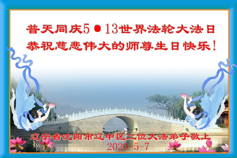 普天同庆世界法轮大法日! 沈阳市辽中区三名大法弟子敬上 二零二零年五月六日 辽宁省沈阳市和平区一大法弟子恭祝师尊生日快乐!