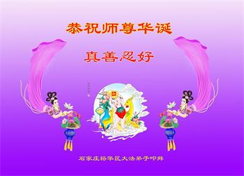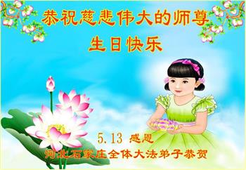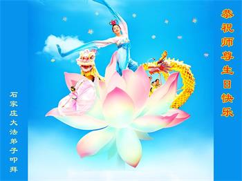 河北石家庄市全体大法弟子恭祝慈悲伟大的师尊生日快乐!