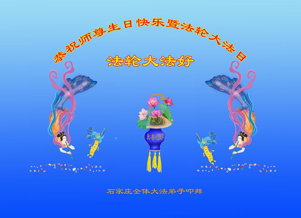 河北石家庄市谈固大法弟子恭祝慈悲伟大的师父生日快乐!恭贺世界法轮大法日!