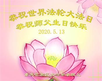 【明慧网二零二零年五月十二日】 重庆巴南区大法弟子恭祝世界法轮大法日!恭祝师父生日快乐!