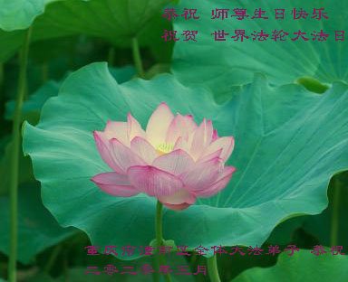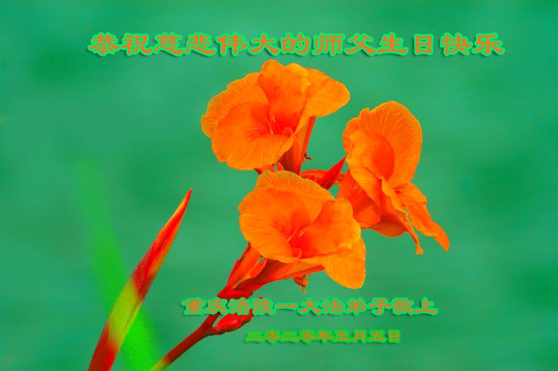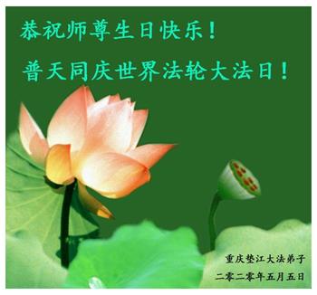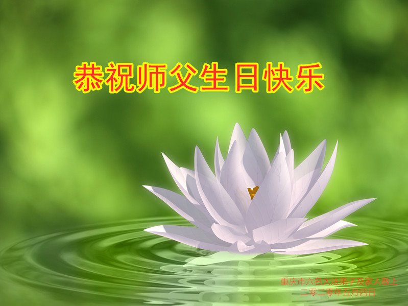 重庆涪陵一女大法弟子恭祝慈悲伟大的师尊生日快乐! 重庆市一大法弟子全家恭祝慈悲伟大的师尊生日快乐!庆贺五一三世界法轮大法日!