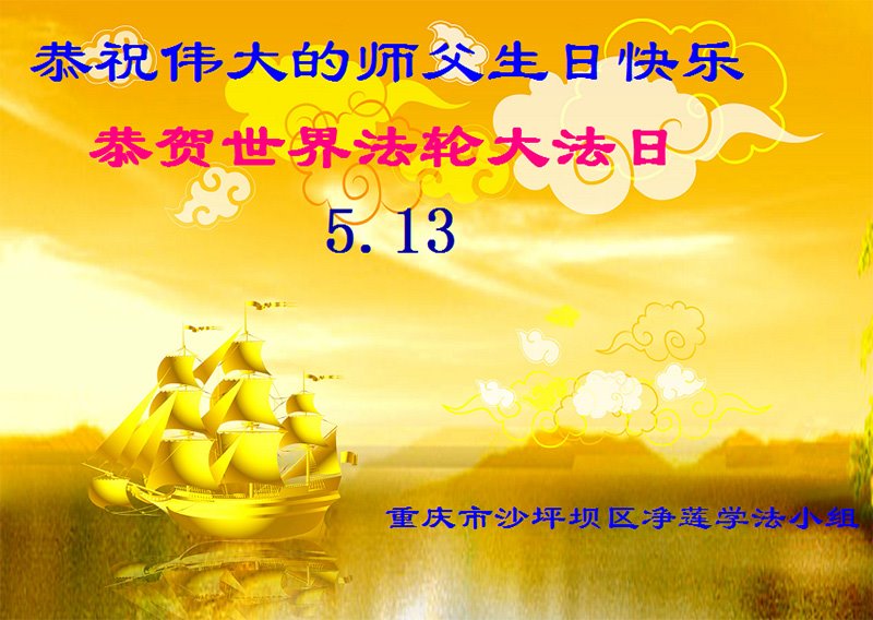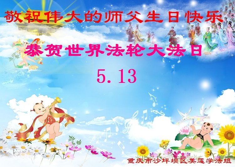 永远感恩不尽师父的浩荡洪恩和对弟子的慈悲苦度。 重庆市沙坪坝区净莲学法小组大法弟子恭祝慈悲伟大的师尊生日快乐!恭贺5.13世界法轮大法日!