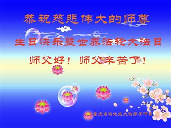 重庆全体法轮大法弟子恭祝慈悲伟大的师父生日快乐!