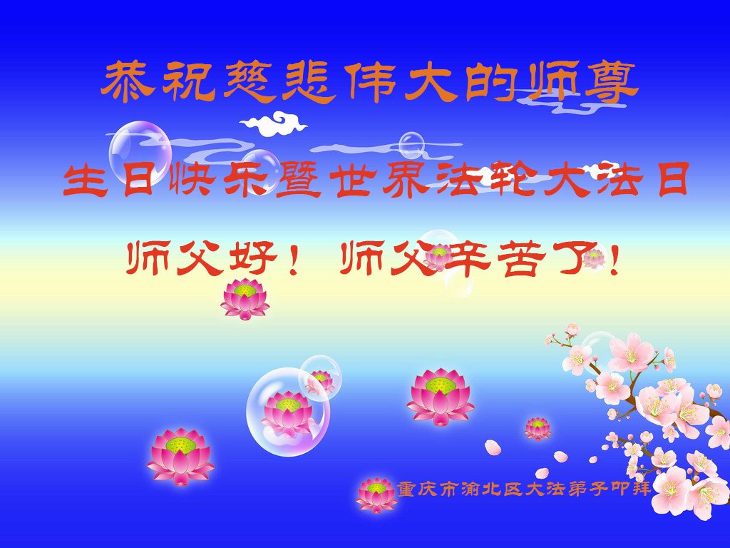 重庆市渝北区大法弟子恭祝慈悲伟大的师尊生日快乐!