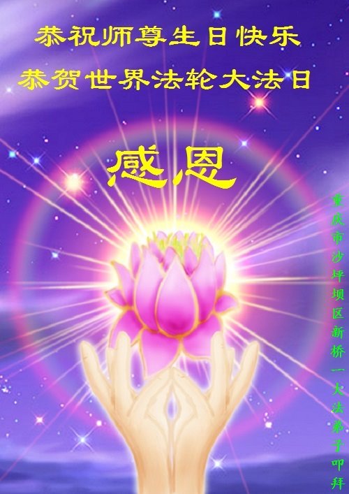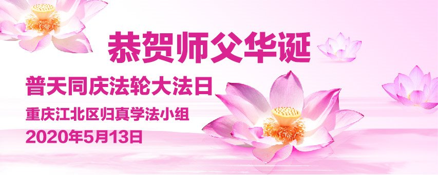 恭贺师尊华诞! 普天同庆法轮大法日! 在这最后时刻精進救人,多救人、兑现誓约随师还。 重庆市江北区归真学法小组 2020年5月3日 重庆渝北一位大法弟子恭贺师尊华诞!