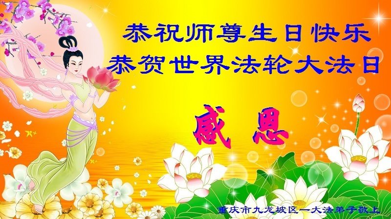 重庆市九龙坡区大法弟子恭祝慈悲伟大的师尊生日快乐!