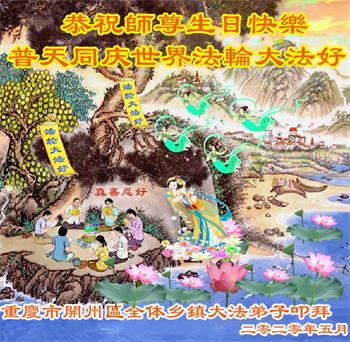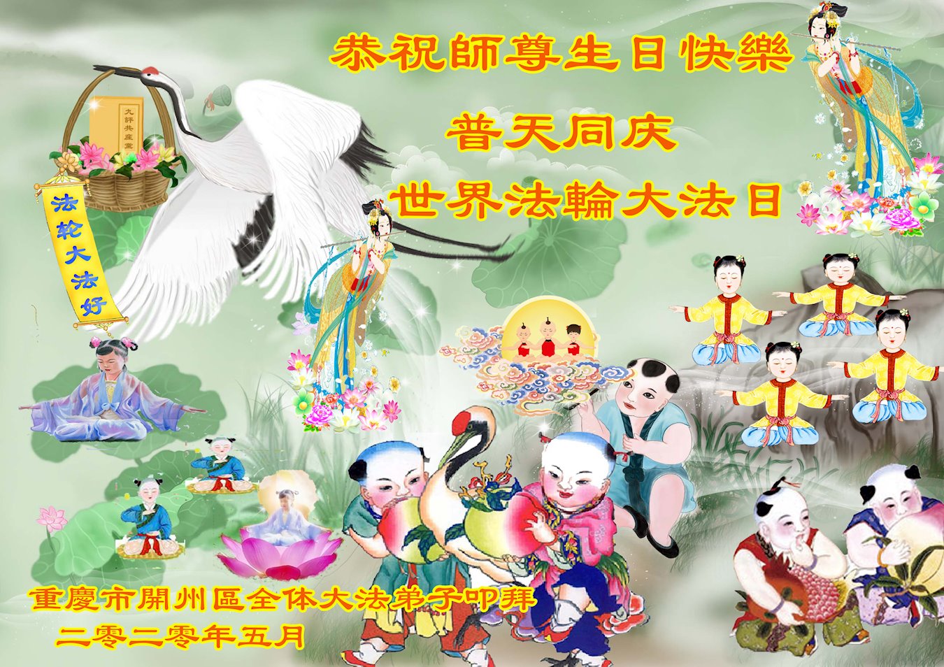 重庆渝北一大法粒子 重庆市开州区全体大法弟子恭祝慈悲伟大的师尊生日快乐!同庆五一三世界法轮大法日!