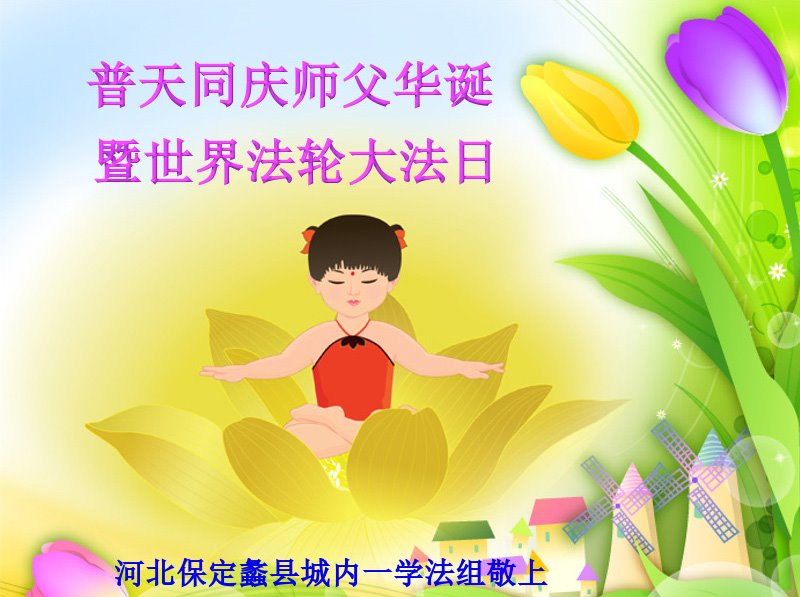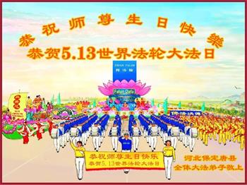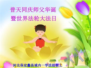 河北保定市蠡县一学法小组大法弟子恭贺世界法轮大法日!祝师尊生日快乐!