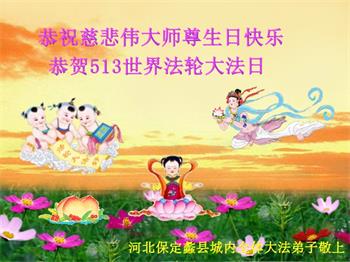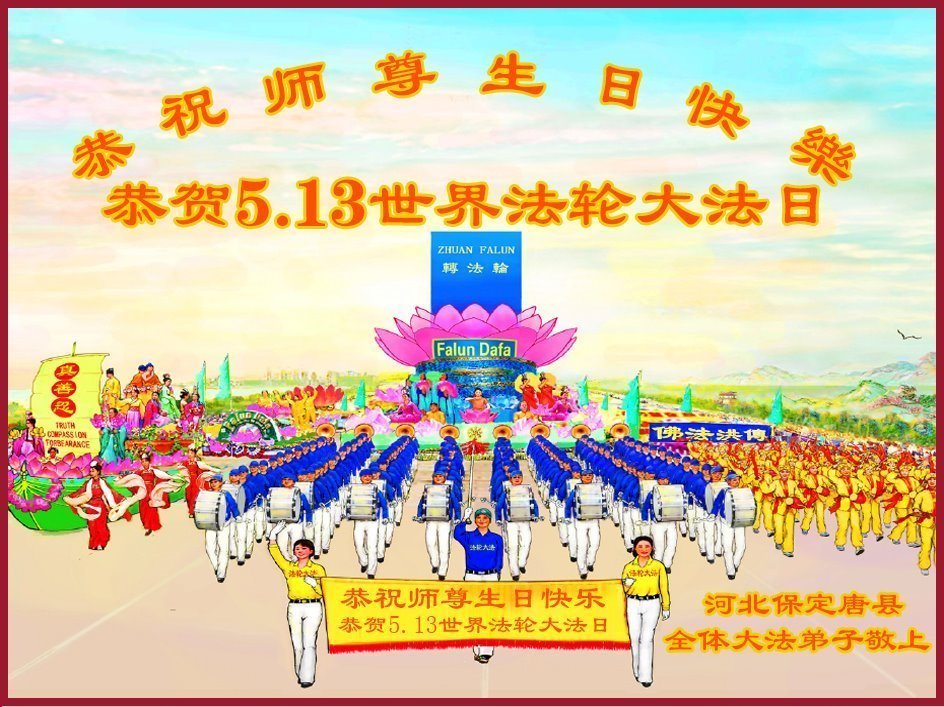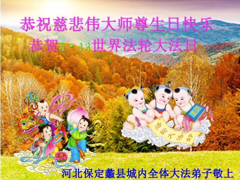 河北保定安国市全体大法弟子恭贺“五·一三”世界法轮大法日!恭祝慈悲伟大的师尊生日快乐!