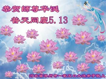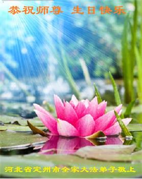 【明慧网二零二零年五月十二日】 河北保定市定州市一大法弟子及家属恭祝师尊生日快乐!