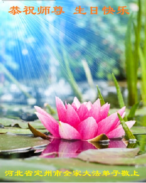 任何语言都无法表达弟子对师父的无限感恩,大法的洪恩不断唤醒着一方众生,法轮大法弟子表示能修大法是人生最大的幸福,最有福气的事。祝贺我们心目中慈悲伟大的师父生日快乐! 河北保定西郊学法小组 河北保定市定州两个学法小组大法弟子恭祝法轮大法日