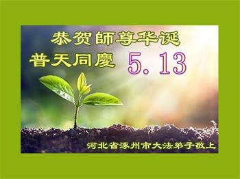 恭贺5.13世界法轮大法日 在这伟大而又辉煌的历史时刻,我们唐县所有的大法弟子幸遇师尊把我们救度。师父您辛苦了!我们一定不负大法弟子救度众生的使命,精進实修,做好三件事,敬请师尊放心。 河北保定涞源大法弟子恭祝慈悲伟大的师尊生日快乐!恭贺世界法轮大法日!弟子叩谢师恩!