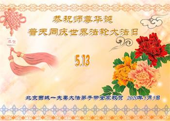 恭贺5.13世界法轮大法日! 北京西城区两名大法弟子敬上 2020年5月5日 北京市朝阳区慧中里一老年大法弟子恭祝慈悲伟大的师尊生日快乐!
