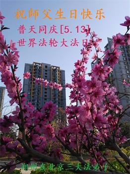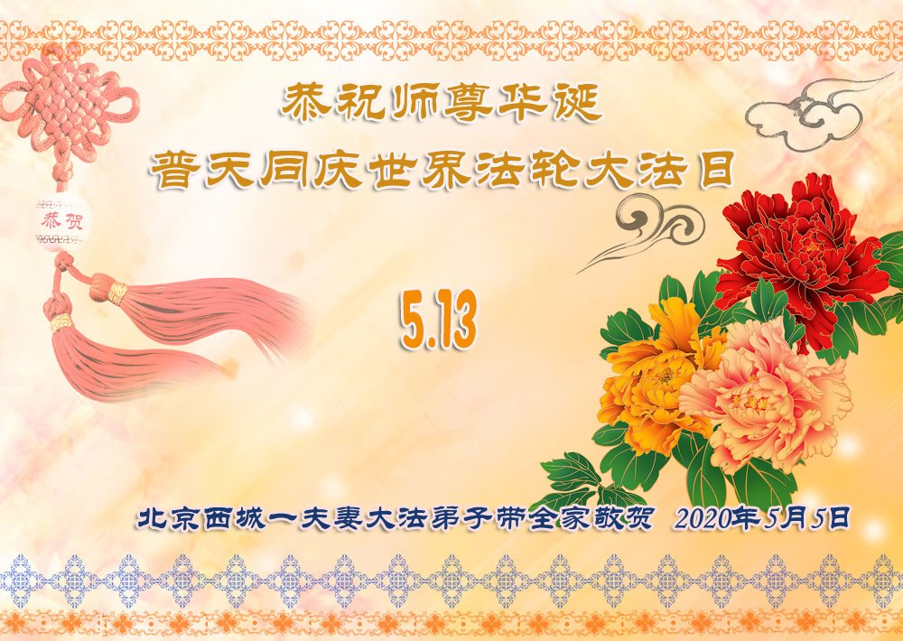 庆祝5.13世界法轮大法日! 弟子要勇猛精進,跟上正法進程,紧跟师父回家。 北京市一大法弟子跪拜 二零二零年五月五日 河南省郑州市在北京的三位大法弟子恭祝师父生日快乐!